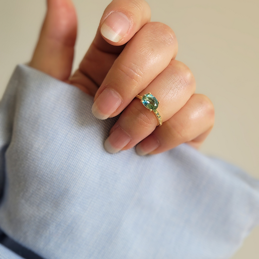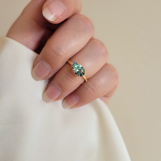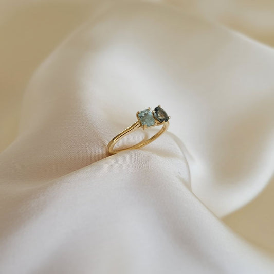 Bespoke Aquamarine and Sapphire Toi & Moi Ring