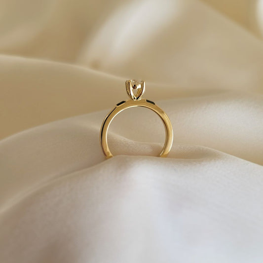 Bespoke Diamond Solitaire with Sapphire Baguette Ring